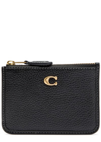 Info & Care Coach pebbled leather;ID card Logo plaque, ID slot, card slot, slip pocket,;keychain, fully lined Zip fastening at top Size & Fit Dimensions: 11cm x 8cm x 0.2cm