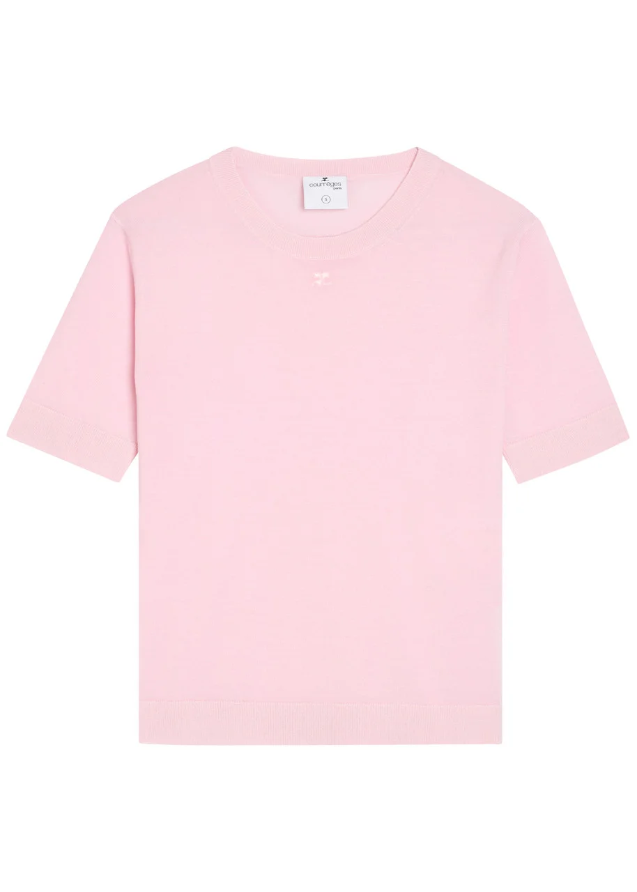 Info & Care Courreges merino wool T-shirt Crew-neck, logo embroidery at neck, ribbed trims Slips on; 100% merino wool; Hand wash; Size & Fit Length shoulder to hem: 20.5 inches/ 52.5cm Midweight Regular fit Model is 5'9"/ 175cm and wears a size small