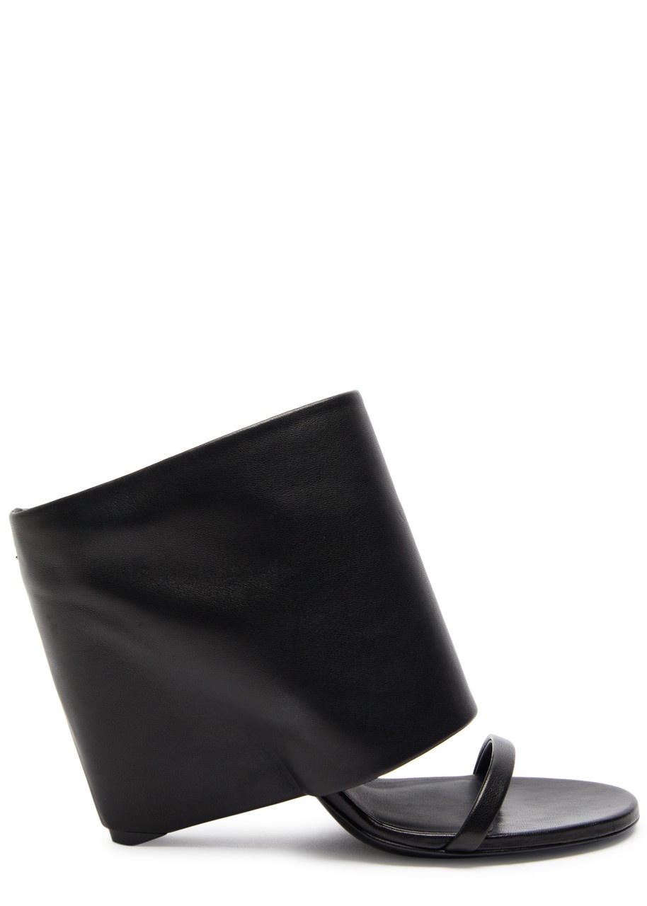 OBLIQUE WEDGED LEATHER MULES
