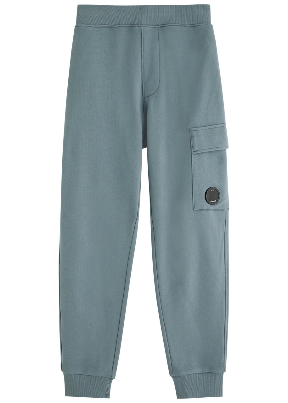 Info & Care C.P. Company cotton sweatpants Concealed drawstring elasticated waistband, two slip pockets, two flap front patch pockets, designer engraved lens embellishment, ribbed trims Pull on; 100% cotton; Machine wash; Size & Fit Inside leg length: 28 inches/ 71cm Midweight; Regular fit, tapered-leg cut; Model is 6'3"/ 191cm and wears a size medium