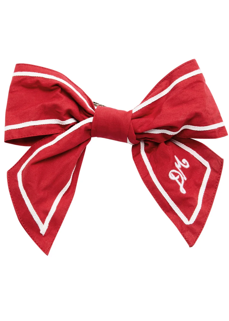 Info & Care Damson Madder cotton hair clip; Bow design, contrasting woven piping, logo embroidery Push-clasp fastening; 100% organic cotton; Machine wash; Size & Fit Clip length: 8cm;