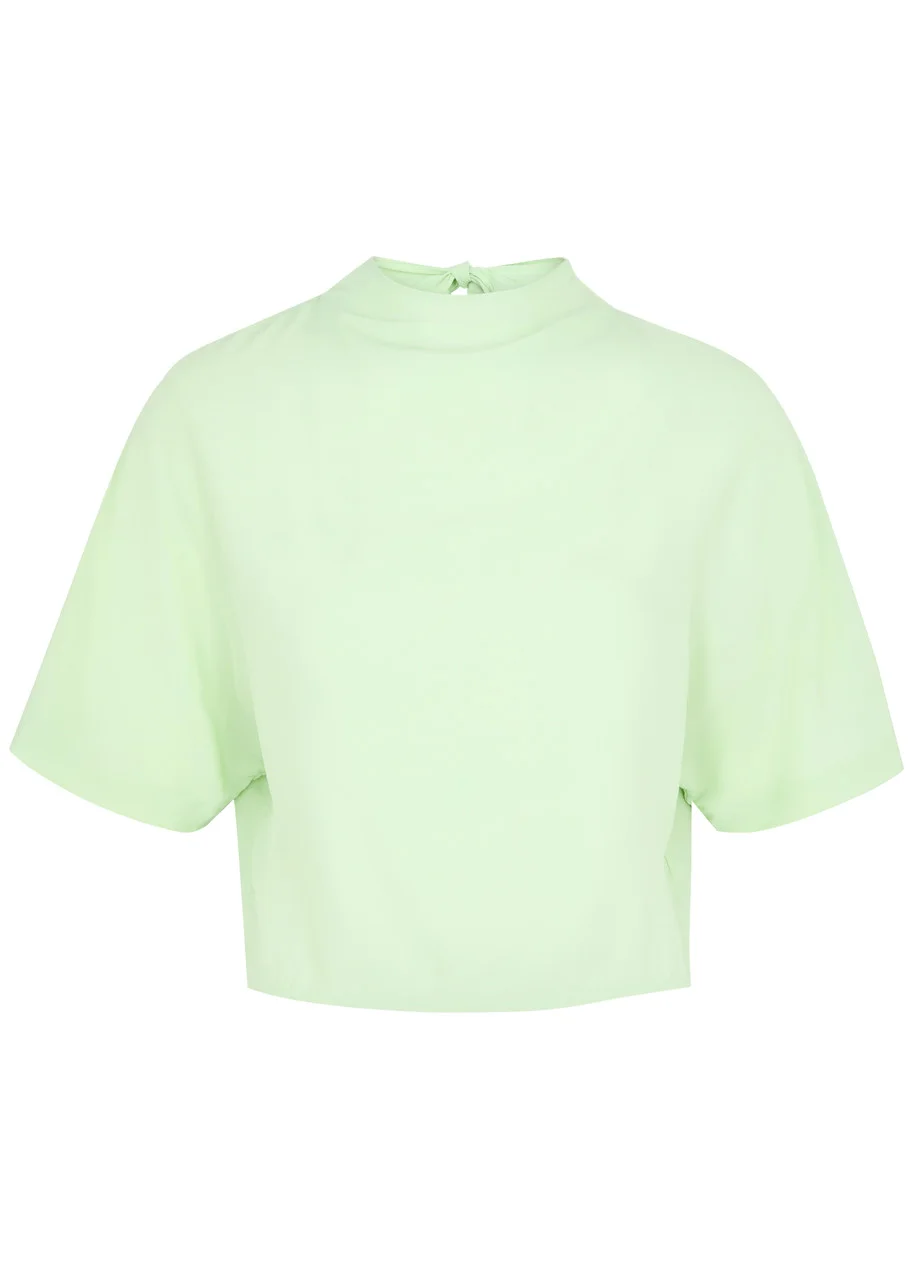 Info & Care Diane Von Furstenberg crepe top; Tie-fastening high-neck, dolman sleeves; Concealed zip-fastening at back; 100% viscose Dry clean; Size & Fit Length shoulder to hem: 18.5 inches/ 47cm; Midweight; Slightly relaxed fit; Model is 5'9"/ 175cm and wears a size small