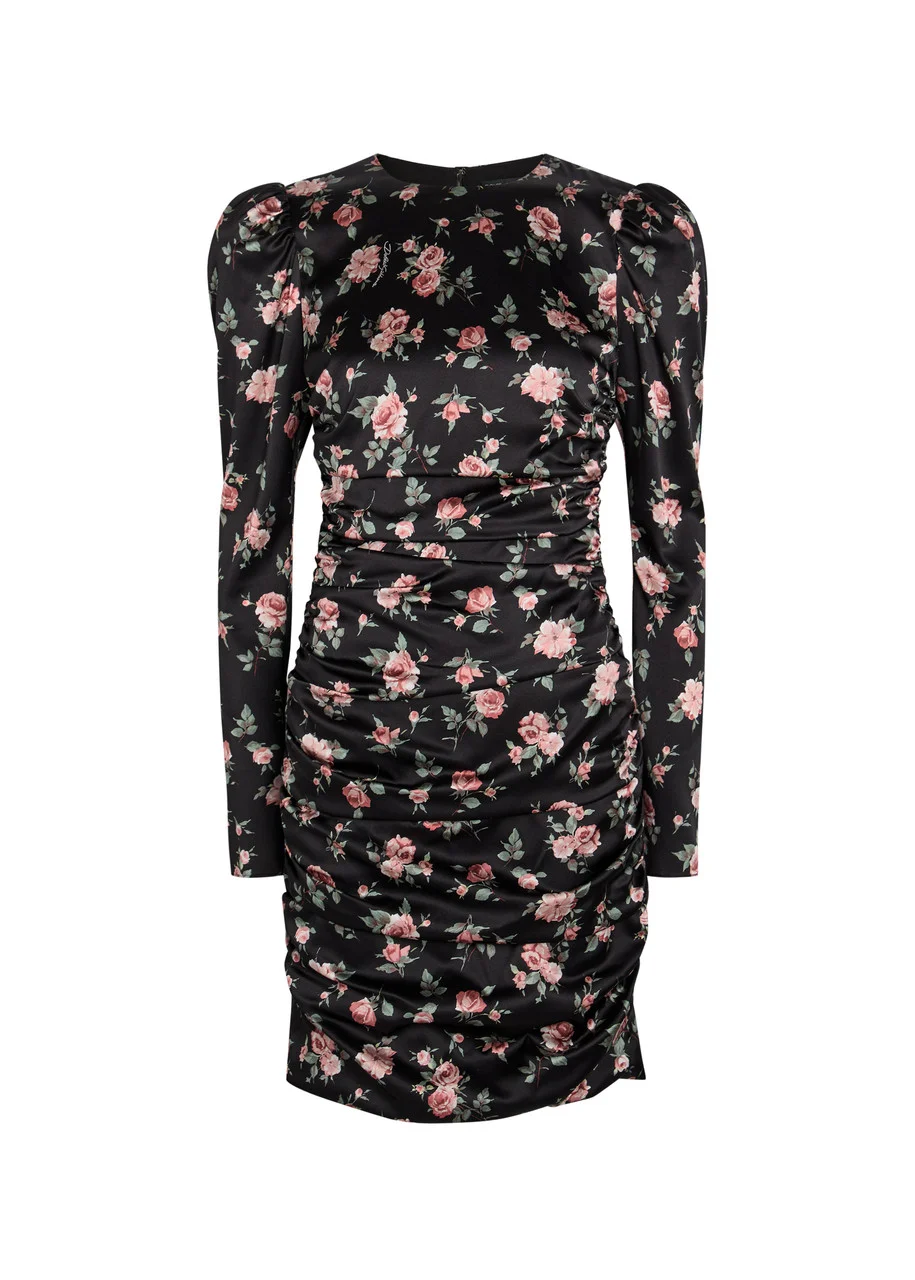 Info & Care Dolce & Gabbana stretch-silk dress Floral print, ruched, round-neck,;padded shoulders, fully lined Concealed zip fastening at back 93% silk, 7% elastane; lining:;91% silk, 9% elastane Dry clean Size & Fit Length shoulder to hem: 36 inches/ 91.5cm Midweight Slim fit Model is 5'9"/ 175cm and wears a size;IT40