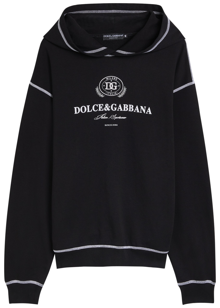 Info & Care Dolce and Gabbana cotton sweatshirt; Hood, dropped shoulders, logo;embroidery;designer-printed chest,;contrasting stitching,;ribbed trims Slips on; 100% cotton; Machine wash; Size & Fit Length shoulder to hem: 27.5 inches/ 70cm Midweight Relaxed fit Model is 6'1"/ 185cm, chest size 38.5 inches and wears a size;IT48