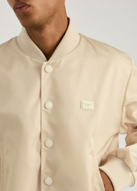 Info & Care Dolce & Gabbana nylon bomber jacket; Dropped shoulders, designer plaque, two slit pockets, cotton-blend ribbed trims, two internal zip-fastening pockets, mesh lining; Concealed press-stud fastenings through front; 100% polyamide; knit: 80% cotton, 17% polyamide, 3% elastane; lining: 100% polyamide Dry clean; Size & Fit Length shoulder to hem: 27 inches/ 68.5cm Midweight; Regular fit; Model is 6'1"/ 185cm, chest size 38 inches and wears a size;IT48