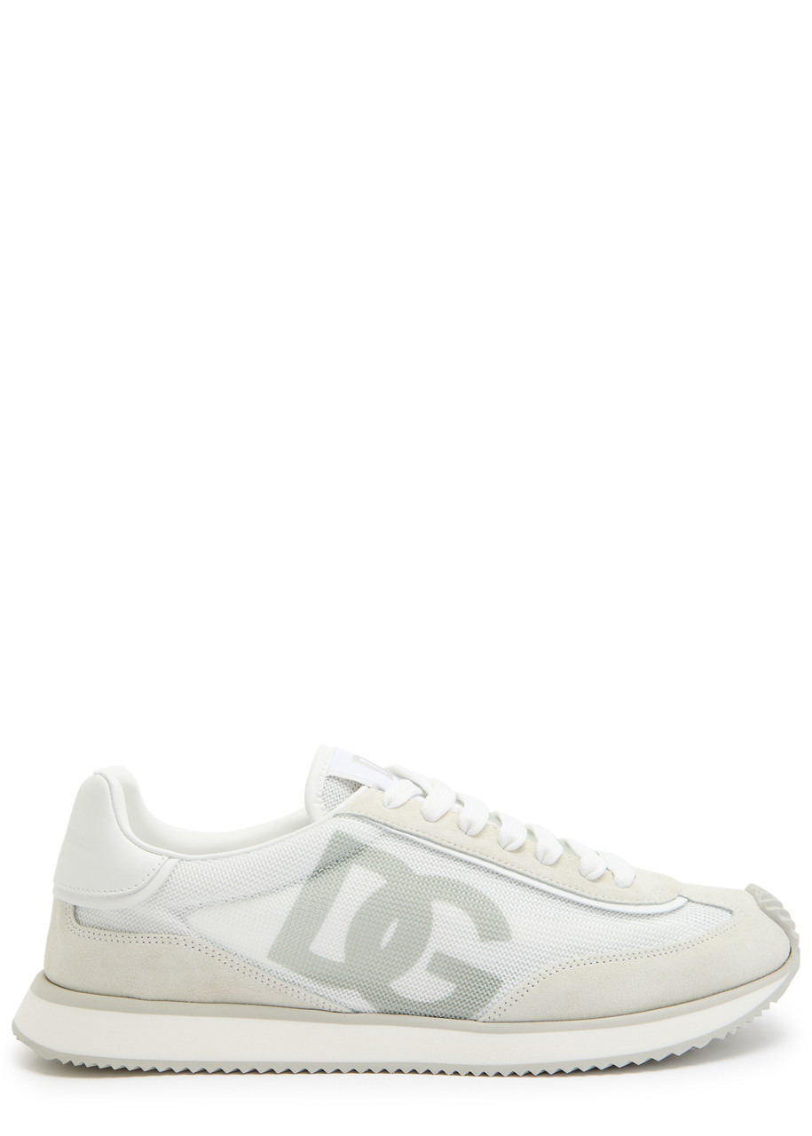 Logo-Print Mesh, Leather and Suede Sneakers White