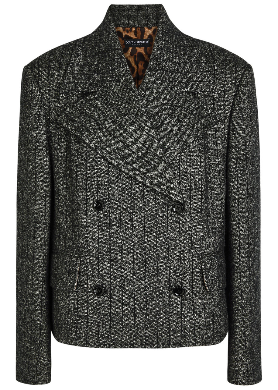 Info & Care Dolce & Gabbana wool-blend blazer Subtle striped intarsia, notched lapels, padded shoulders, button-fastening cuffs, two front flap pockets, fully lined Double-breasted button fastenings at front 48% virgin wool, 35% wool, 16% polyamide, 1% elastane; lining: 97% polyester, 3% elastane Dry clean Size & Fit Length shoulder to hem: 23.5 inches/ 60cm Midweight Boxy;fit Model is 5'8"/172cm and wears a size IT40
