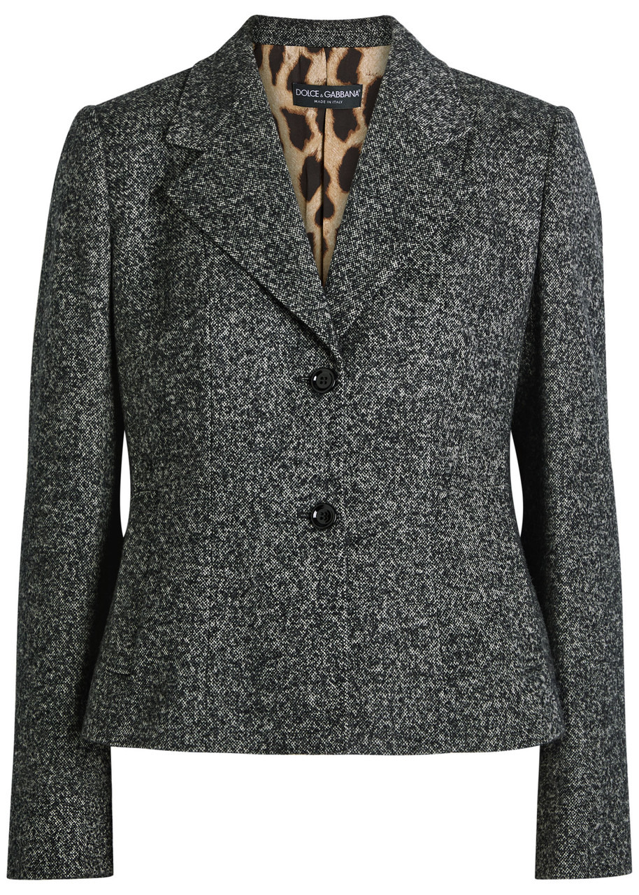 Info & Care Dolce & Gabbana wool-blend blazer Flecked finish, notched lapels, lightly padded shoulders,;darts through waist, side slip pockets, fully lined Button fastenings at front 48% virgin wool, 35% wool, 16% polyamide, 1% elastane; lining: 97% polyester, 3% elastane Dry clean Coordinating items available Size & Fit Length shoulder to hem: 21.5 inches/ 54.5cm Midweight Boxy fit, tailored style Model is 5'9"/ 175cm;