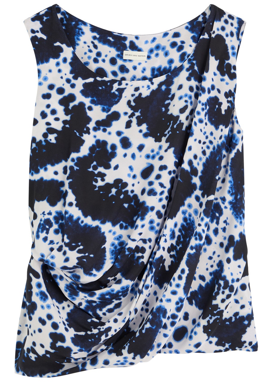 Info & Care Dries Van Noten;matte satin top; Printed, round neck, draped and gathered side; Slips on; 100% viscose Dry clean; Size & Fit Length shoulder to hem: 28 inches/ 71cm; Midweight; Relaxed fit; Model is 5'9"/ 175cm and wears a size;FR36