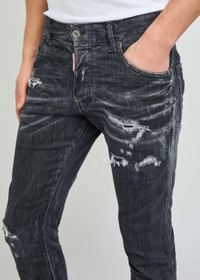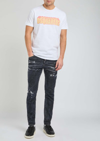 Info & Care Dsquared2 stretch-denim jeans Low-rise fit, skinny-leg cut, belt loops, five pockets, designer plaque at front and back, contrasting stitching, whiskered, ripped and painted details, distressed and faded finish Partially concealed button fastenings at front 92% cotton, 6% elastomultiester, 2% elastane Machine wash cold inside out to avoid colour transfer Size & Fit Front rise: 10 inches/ 25.5cm Inside leg length: 28.5 inches/ 72cm Midweight Model is 6'1"/ 185cm and wears a size IT48;