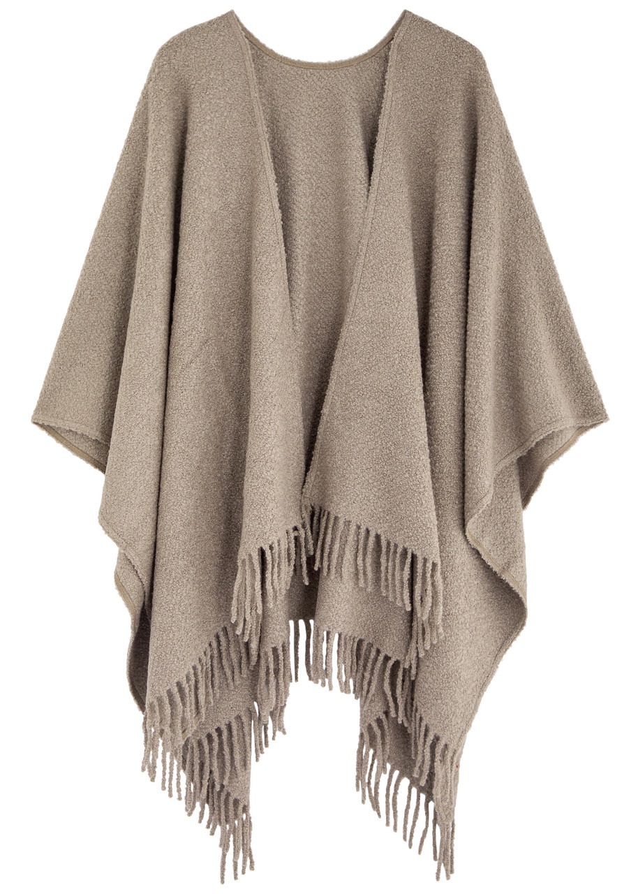 Info & Care Eileen Fisher alpaca-blend shawl Boucle knit, fringed trims, handkerchief hem Slips on 80% alpaca, 20% silk Dry clean Size & Fit Length shoulder to hem: 40 inches/ 101.5cm Midweight Loose fit One size; will comfortably fit a size UK6-UK16