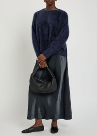 Info & Care Eileen Fisher satin skirt Elasticated waistband, crinkled finish Pull on 100% Naia™ acetate Machine wash Size & Fit Length waist to hem: 37 inches/ 94cm Midweight Loose fit Model is 5'9"/ 175cm and wears a size small