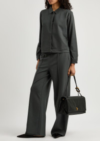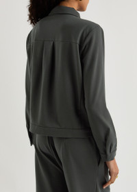 Info & Care Eileen Fisher jersey jacket Collar, concealed press-stud fastenings at cuffs, side slip pockets, box pleat through back Concealed press-stud fastenings through front 66% TENCEL Lyocell, 31% nylon, 3% elastane Machine wash Size & Fit Length shoulder to hem: 22 inches/ 56cm Midweight Regular fit Model is 5'9"/ 175cm and wears a size small
