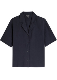 Info & Care Eileen Fisher seersucker shirt Notched collar, side splits Button fastenings through front 99% organic;cotton, 1% elastane Machine wash; Size & Fit Length shoulder to hem: 21 inches/ 53.5cm Midweight Boxy, loose fit Model is 5'9"/ 175cm and wears a size small