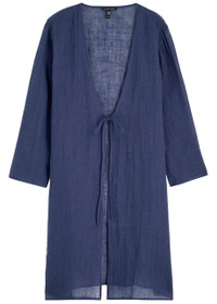 Info & Care Eileen Fisher linen jacket; Sheer, side splits at hem Tie-fastening at front; 100% organic linen Machine wash Size & Fit Length shoulder to hem: 38.5 inches/ 97.5cm Midweight Loose fit Model is 5'9"/ 175cm and wears a size small