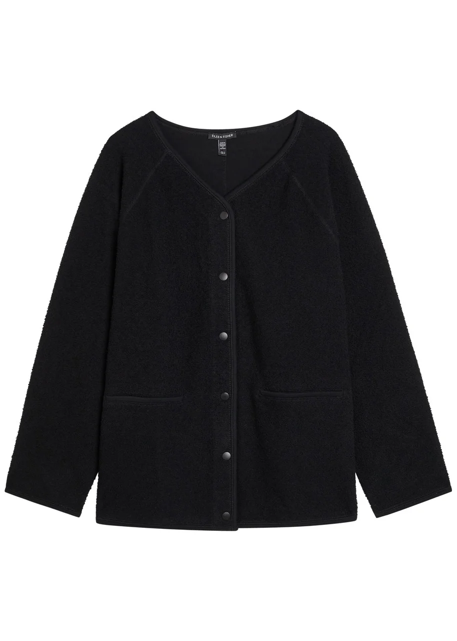 Organic Cotton Stretch Boucle V-Neck Jacket