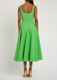 Collins pleated paneled wool-crepe midi dress Bright green