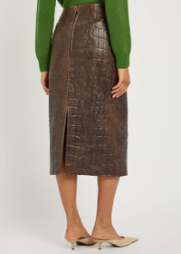 Emilia Wickstead Loretta Crocodile-effect Leather Midi Skirt