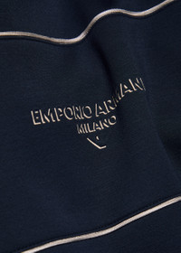 Info & Care Emporio Armani;jersey;sweatshirt Drawstring hood,;designer embroidery and print, piped trims Slips on 100% modal Hand wash Size & Fit Length shoulder to hem: 25.5 inches/ 65cm Midweight Relaxed fit Model is 6'1"/ 185cm, chest size 38.5 inches and wears a size medium