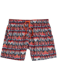 Info & Care Emporio Armani shell swim shorts Monogram logo print, elasticated drawstring waistband, side slip pockets, mesh briefs lining Pull on 100% polyester Machine wash Size & Fit Length waist to hem: 15.5 inches/ 39.5cm Midweight Relaxed fit Model is 6'1"/ 185cm and wears a size medium;