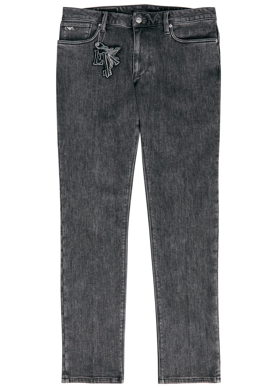 Info & Care Emporio Armani denim jeans Mid-rise fit, tapered-leg cut, belt loops, five pockets, keychain embellishment, designer plaques at front and back, washed finish Partially concealed button and zip fastening at front 78% cotton, 20% polyester, 2% elastane Machine wash cold inside out to avoid colour transfer Size & Fit Front rise: 10 inches/ 25.5cm Inside leg length: 32 inches/ 81.5cm Midweight Model is 6'1"/ 185cm, chest size 38.5 inches and wears a size;W32