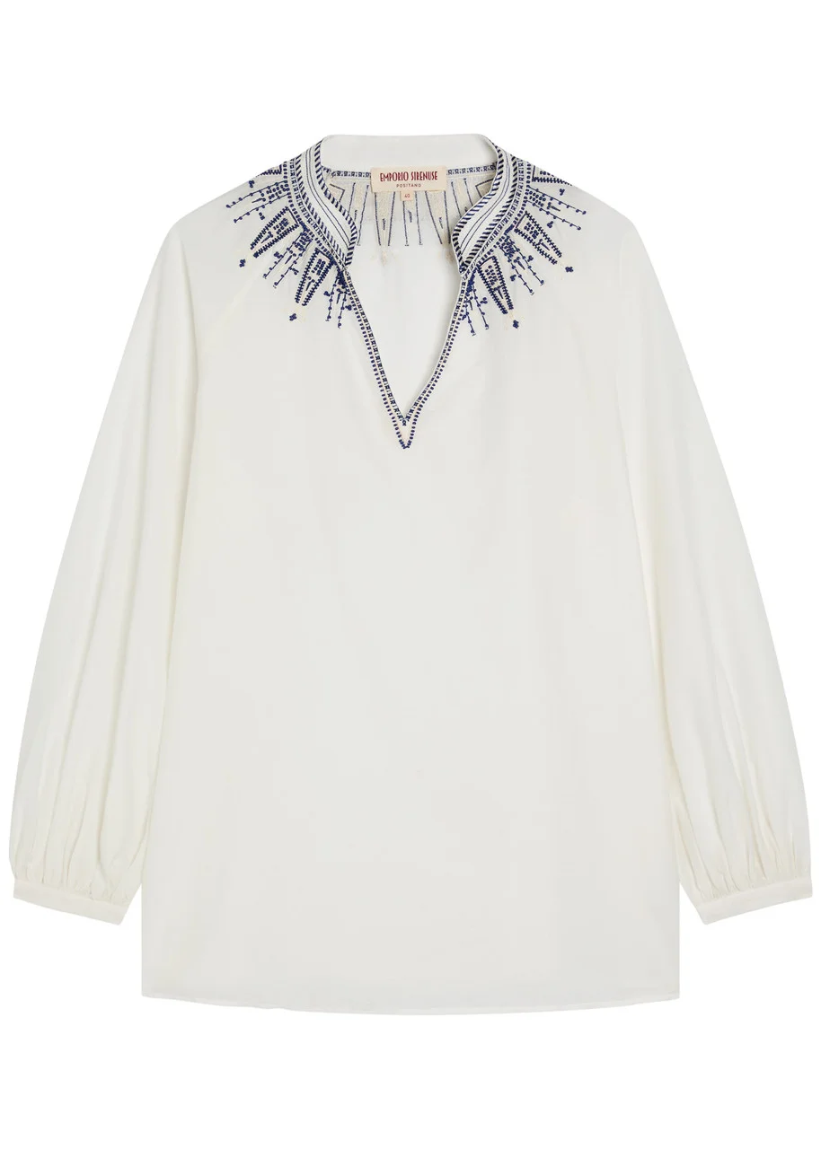 Emporio Sirenuse Illizia Embroidered Cotton-blend Blouse