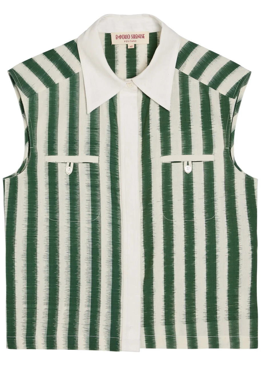 Info & Care Emporio Sirenuse cotton top Handloomed, striped, button-fastening chest patch pockets Concealed button fastenings through front 100% cotton Dry clean Coordinating items available Size & Fit Length shoulder to hem: 20 inches/ 51cm Midweight Slim fit Model is 5'9"/ 175cm and wears a size;IT40