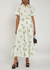 Erdem Embroidered Tiered Cotton-blend Midi Skirt