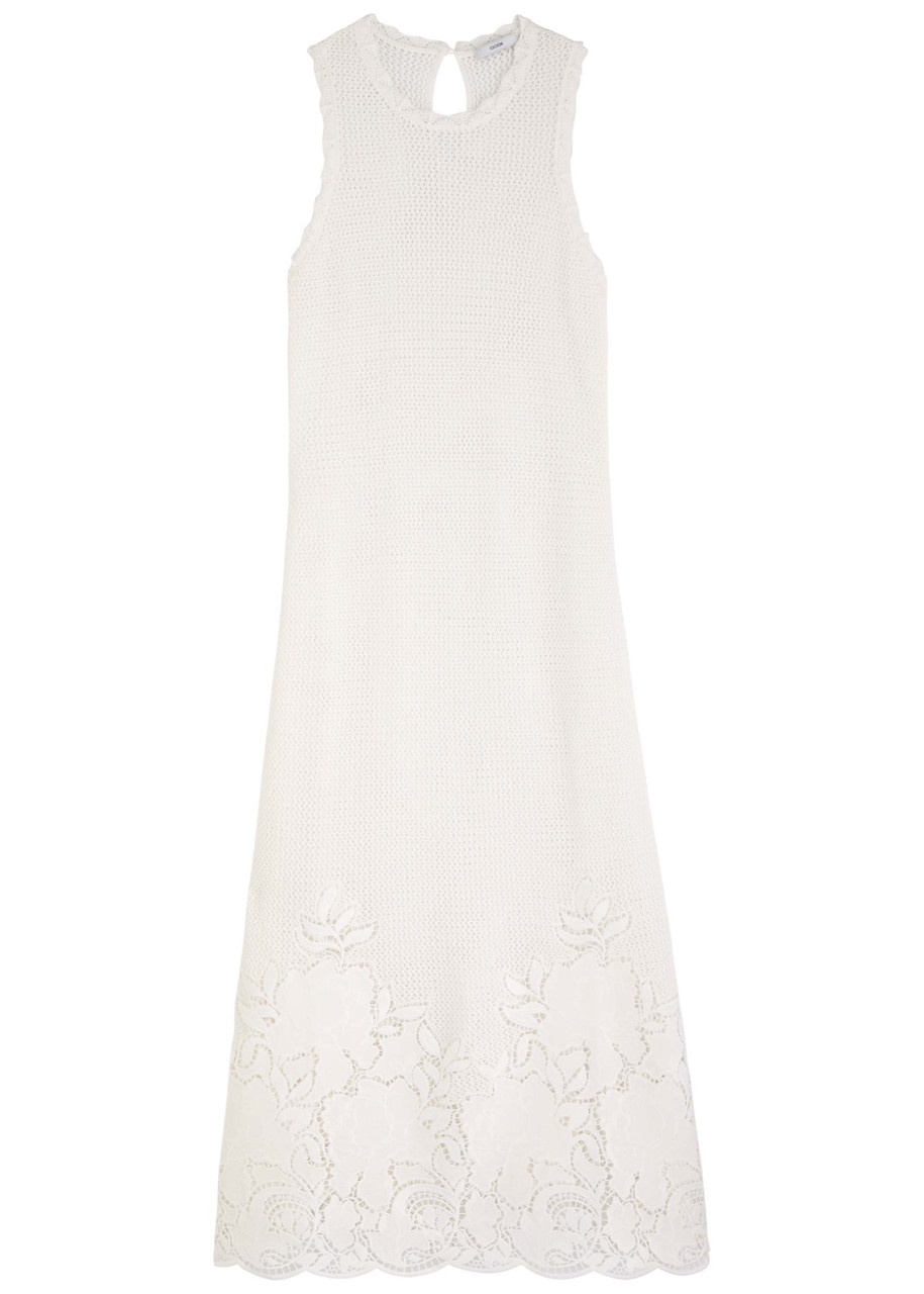 Info & Care Erdem open-knit dress Round-neck, keyhole cut-out at back neck, floral embroidery at hem, scalloped trims Concealed button fastening at back 100% cotton Machine wash Size & Fit Length shoulder to hem: 51.5 inches/ 131cm Midweight Regular fit Model is 5'10"/ 178cm and wears a size small