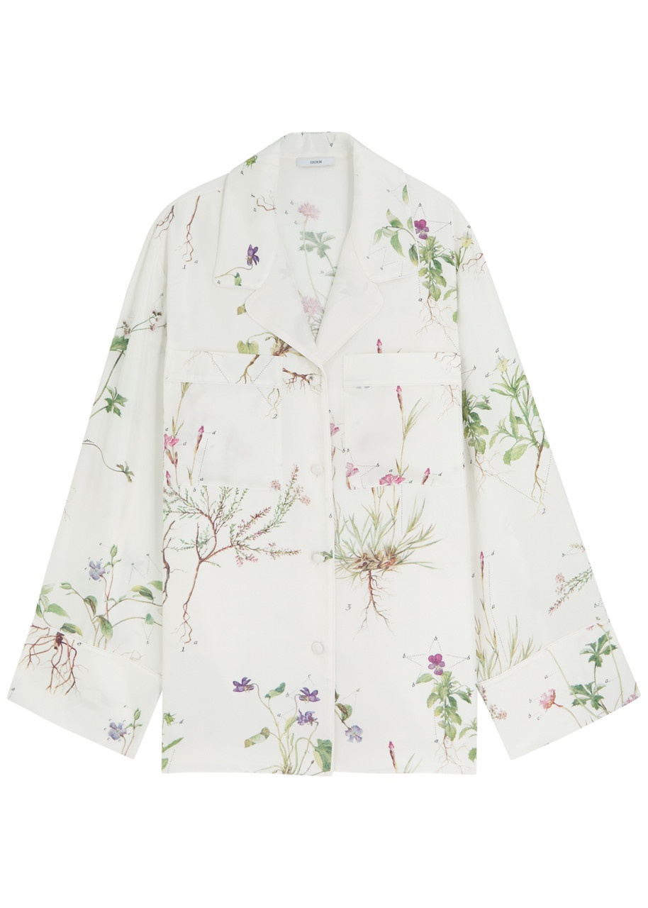Info & Care Erdem;silk pyjama shirt Printed, camp collar, button-fastening cuffs, chest patch pockets, side splits at hem; button fastenings through front Dry clean Size & Fit Length shoulder to hem: 28.5 inches/ 72.5cm Midweight Loose fit Model is 5'10"/ 178cm and wears a size;UK8