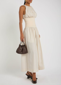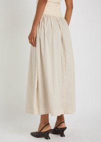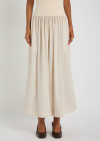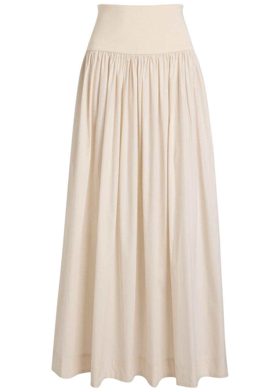 Gathered organic cotton-poplin and stretch-knit maxi skirt Cream