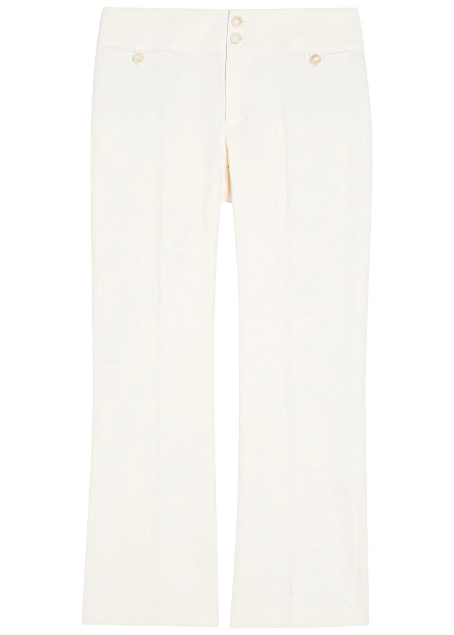 Info & Care Etro cotton trousers Embroidered, button-fastening slit pockets at front, pressed crease through legs Partially concealed button and zip fastening at front 59% cotton, 40% viscose, 1% elastane Dry clean Size & Fit Inside leg length: 29 inches/ 73.5cm Midweight Slim-leg cut Model is 5'8"/ 173cm and wears a size;IT40