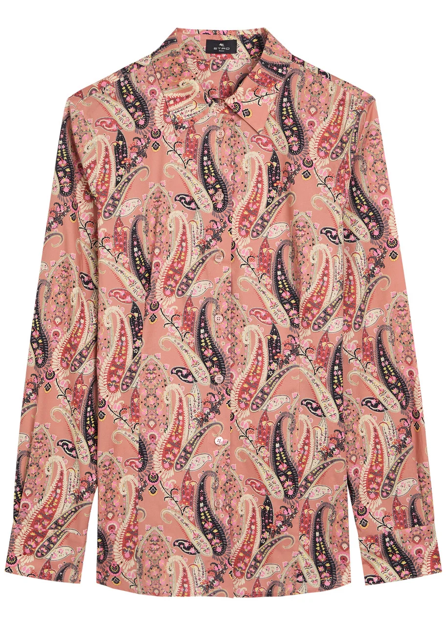 Info & Care Etro stretch-cotton shirt Paisley print, button-fastening cuffs, curved hem Button fastenings through front 97% cotton, 3% elastane Machine wash; Size & Fit Length shoulder to hem: 27 inches/ 68.5cm Midweight Regular fit Model is 5'10"/ 178cm and wears a size small