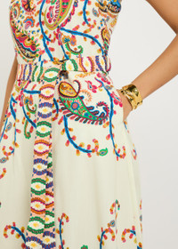 LONG COTTON DRESS WITH PLACED FLORAL PAISLEY PRINT