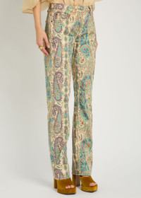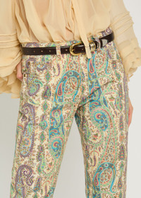 Info & Care Etro stretch-denim jeans Patterned, mid-rise fit, straight-leg cut, belt loops, five pockets, designer plaque at back Partially concealed button and zip fastening at front 97% cotton, 3% elastane Machine wash cold inside out to avoid colour transfer Size & Fit Front rise: 10 inches/ 25.5cm Inside leg length: 33 inches/ 84cm Midweight Model is 5'9"/ 175cm and wears a size;W27