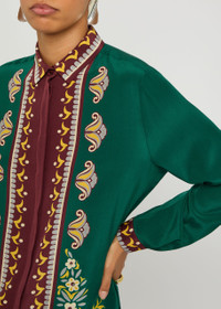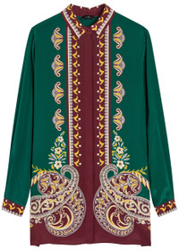 Info & Care Etro silk shirt Printed, button-fastening cuffs, side splits Concealed button fastenings through front 100% silk; Dry clean Size & Fit Length shoulder to hem: 30 inches/ 76.5cm Midweight Loose fit Model is 5'10"/ 178cm and wears a size;IT40