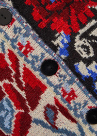 Info & Care Farm Rio knit cardigan; Floral jacquard, V-neck, rounded sleeves Button fastenings through front 55% acrylic, 35% polyamide, 10% wool Hand wash Size & Fit Length shoulder to hem: 26 inches/ 66cm Midweight Relaxed fit Model is 5'9"/ 175cm and wears a size small