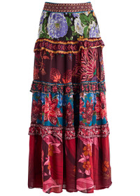 Farm Rio Ruffled Floral-print Chiffon Maxi Skirt