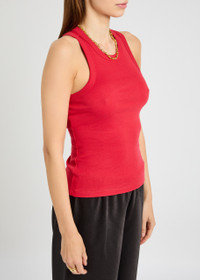 Info & Care FLORE FLORE cotton tank; Crew-neck, racer back, ribbed trims Slips on; 100% organic cotton; Machine wash; Size & Fit Length shoulder to hem: 21 inches/ 53.5cm; Midweight; Slim fit Model is 5'9"/ 175cm and wears a size