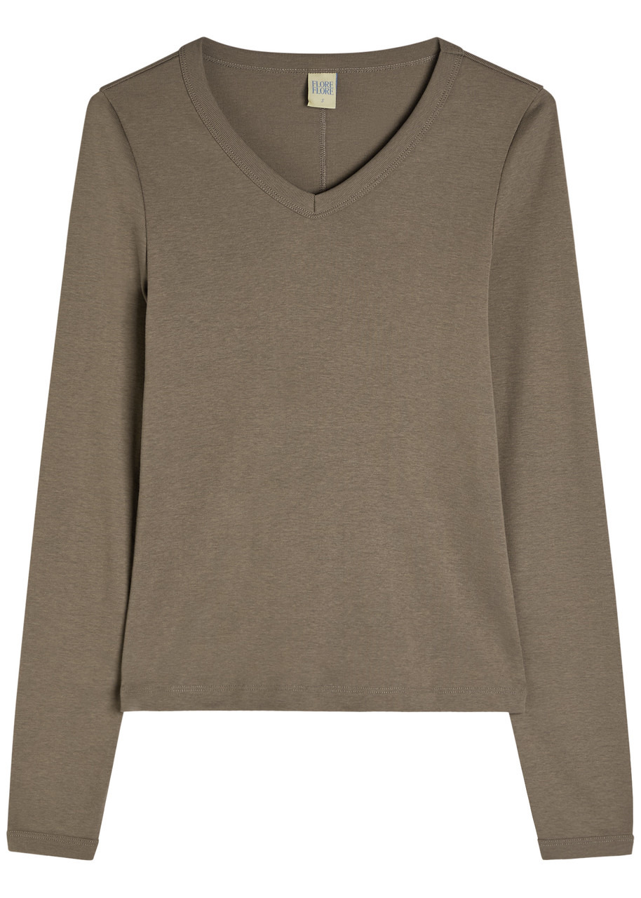 Info & Care FLORE FLORE cotton top V-neck, ribbed trims Slips on 100% organic cotton; Machine wash Size & Fit Length shoulder to hem: 20.5 inches/ 52cm Midweight Slim fit Model is 5'9"/ 175cm and wears a size small