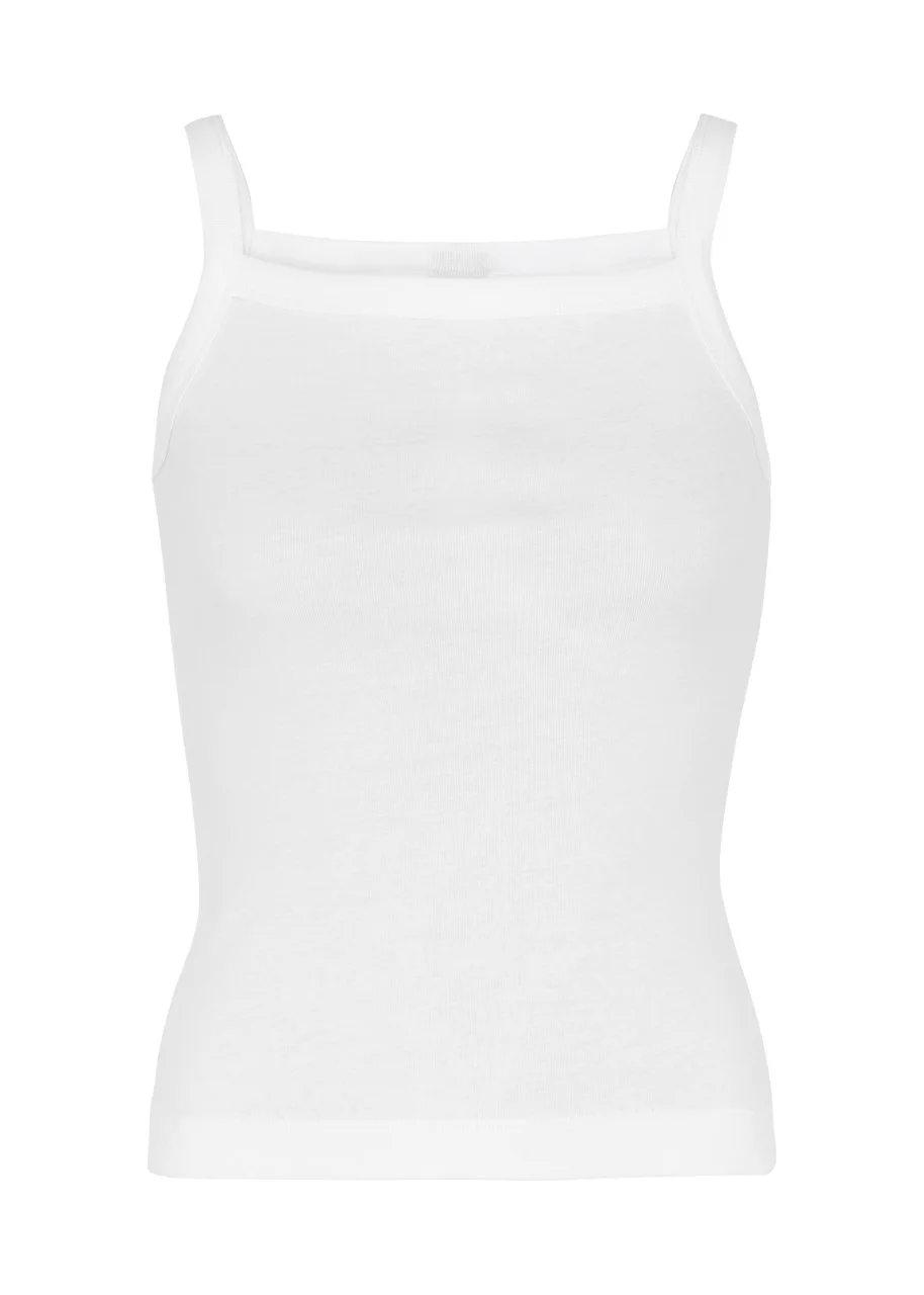 Info & Care FLORE FLORE cotton tank Square neck, ribbed trims Slips on 100% organic cotton Machine wash Size & Fit Length shoulder to hem: 20 inches/ 51cm Midweight Close fit Model is 5'10"/ 178cm and wears a size small