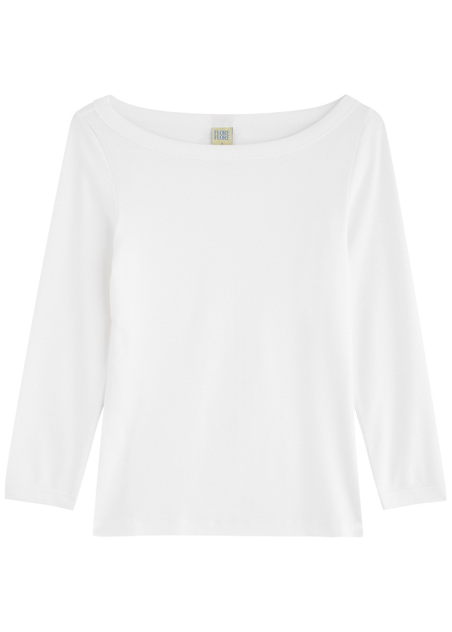 Info & Care FLORE FLORE cotton top Boat neck, ribbed trims Slips on 100% organic cotton Machine wash; Size & Fit Length shoulder to hem: 21.5 inches/ 54.5cm Midweight Slim fit Model is 5'9"/ 175cm and wears a size small