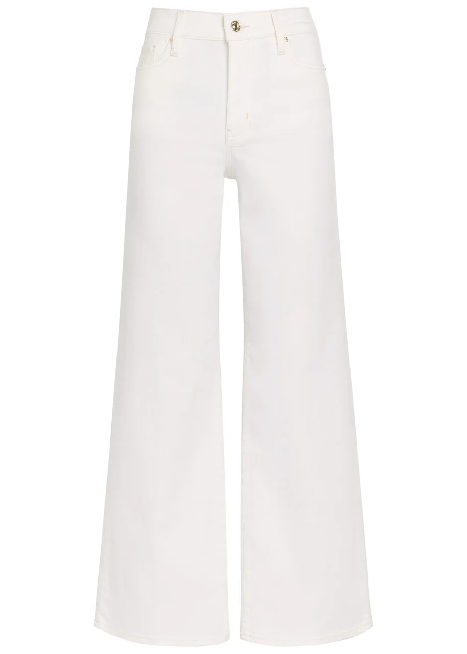 Info & Care Frame stretch-denim jeans High-rise fit, wide-leg cut, belt loops, five pockets Partially concealed zip and button fastening at front 57% cotton, 38% rayon, 3% elasterell-p, 2% elastane Machine wash cold inside out to avoid colour transfer Size & Fit Front rise: 11 inches/ 28cm Inside leg length: 30 inches/ 76.5cm Midweight Model is 5'8"/ 173cm and wears a size W27