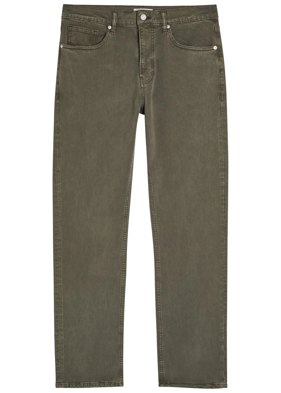 Info & Care Frame stretch-denim jeans; Mid-rise fit, slim straight-leg cut, belt loops, five pockets, faded finish; Partially concealed button and zip fastenings at front; Designer wash:;Smoky Green 67% rayon, 32% polyester, 1% elastane; Machine wash inside out to avoid colour transfer; Size & Fit Front rise: 10.5 inches/ 27cm; Inside leg length: 32 inches/ 81.5cm; Midweight; Model is 6'3"/ 191cm and wears a size W32