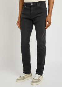 Info & Care Frame stretch-denim jeans; Mid-rise fit, straight-leg cut, belt loops, five pockets, designer-engraved stud embellishments, faded finish; Partially concealed button and zip fastenings at front; Designer wash:;Raven 94% cotton, 5% polyester, 1% elastane; Machine wash cold inside out to avoid colour transfer; Size & Fit Front rise: 10 inches/ 25.5cm; Inside leg length: 31.5 inches/ 80cm; Midweight; Model is 6'3"/ 191cm and wears a size W32