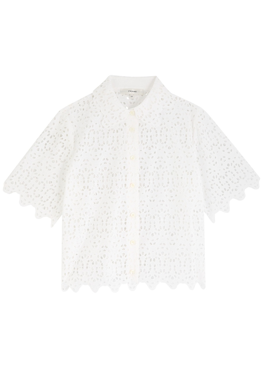 Frame The Deco Eyelet-embroidered Cotton Blouse