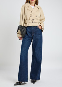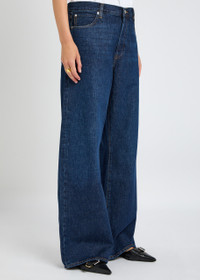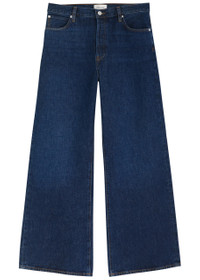 Info & Care Frame denim jeans High-rise fit, wide-leg cut, belt loops, five pockets, slightly faded finish Partially concealed button fastenings at front Designer wash:;Trooper 100% cotton Machine wash cold to avoid colour transfer Size & Fit Front rise: 12 inches/ 30.5cm Inside leg length: 31.5 inches/ 80cm Midweight Model is 5'9"/ 175cm and wears a size W27