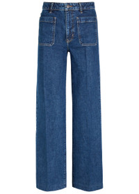 Info & Care Frame stretch-denim jeans High-rise fit, wide-leg cut, belt loops, four patch pockets, pressed crease through legs, faded finish Partially concealed zip and button fastenings at front Designer wash:;Saturn 99% cotton, 1% elastane Machine wash cold inside out to avoid colour transfer Size & Fit Front rise: 10 inches/ 25.5cm Inside leg length: 30 inches/ 76.5cm Midweight Model is 5'9"/ 175cm and wears a size W27