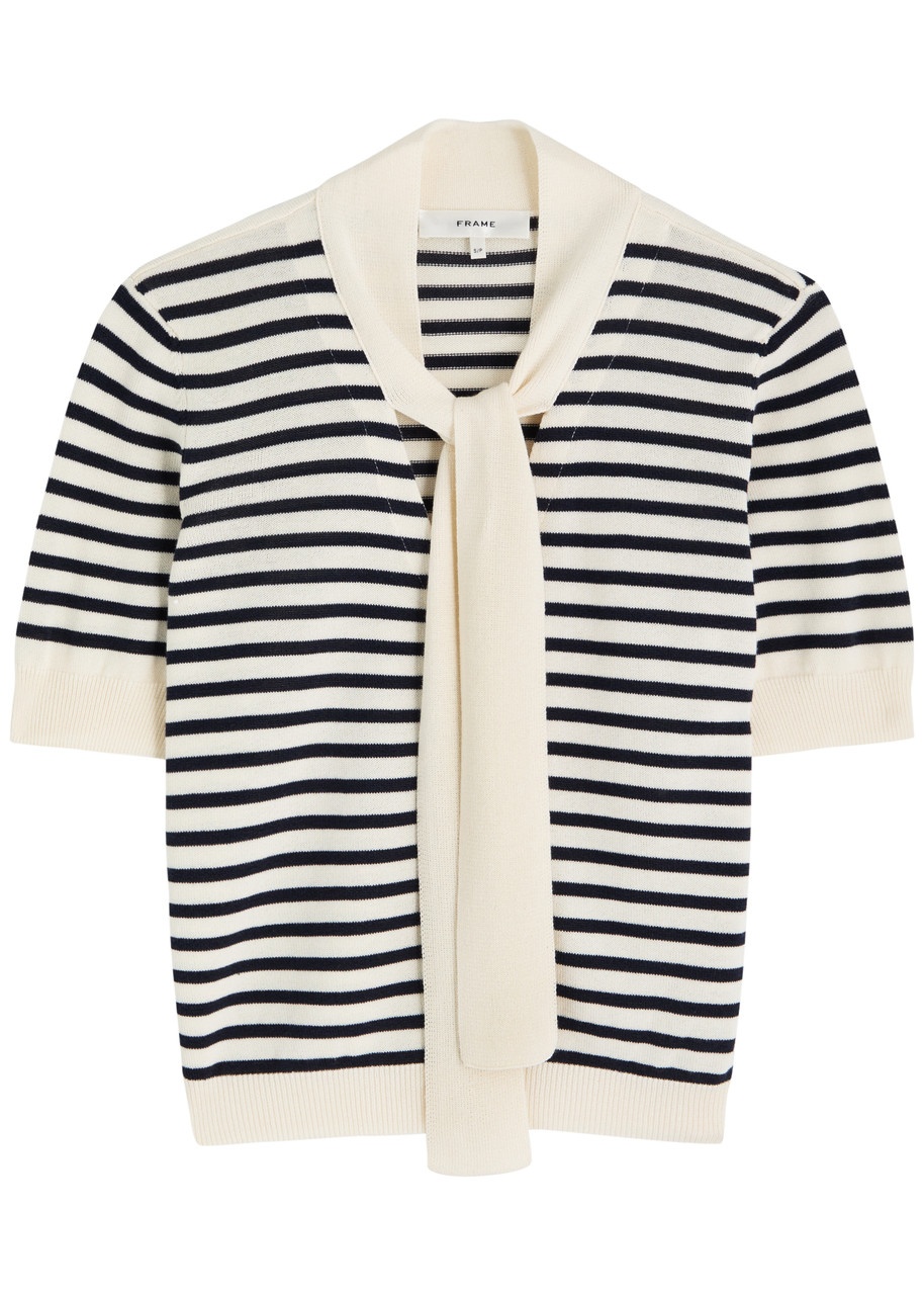 Frame The Sailor Tie Striped Cotton-blend Cardigan