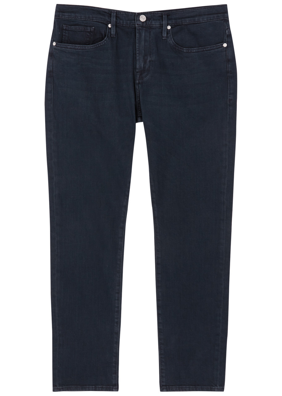 INFO & CARE - Frame stretch-denim jeans - Mid-rise fit, slim-leg cut, belt loops, five pockets, whiskered, faded finish - Partially concealed button and zip fastening at front - Designer wash: Placid - 94% cotton, 5% polyester, 1% elastane - Machine wash cold inside out to avoid colour transfer SIZE & FIT - Front rise: 9.5 inches/ 24cm - Inside leg length: 30.5 inches/ 77.5cm - Midweight - Model is 6'1"/ 185cm and wears a size UK W32